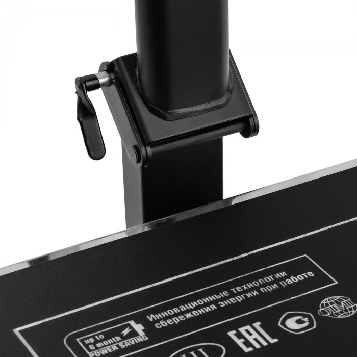Складная стойка облегчает установку весов на рабочем месте и экономит пространство. На стойке расположен LCD-дисплей с крупными символами 9×21 мм — информация хорошо читается при любых углах обзора. Кнопочная клавиатура обеспечивает быстрый доступ к ключевым функциям: обнулению, выбору единиц измерения, работе с тарой и счётному режиму. Весы подают звуковой и визуальный сигнал при перегрузке, защищая тензодатчик от повреждений.